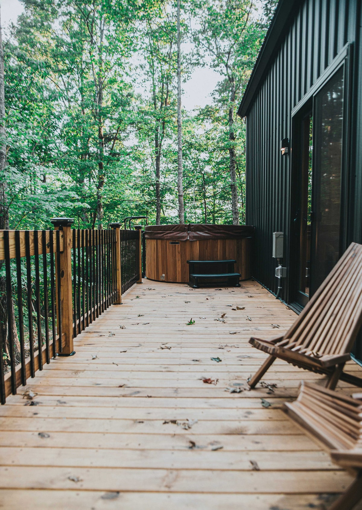 モダンなログハウス、露天風呂・ジャグジー、プライベート、ハイキング、景色