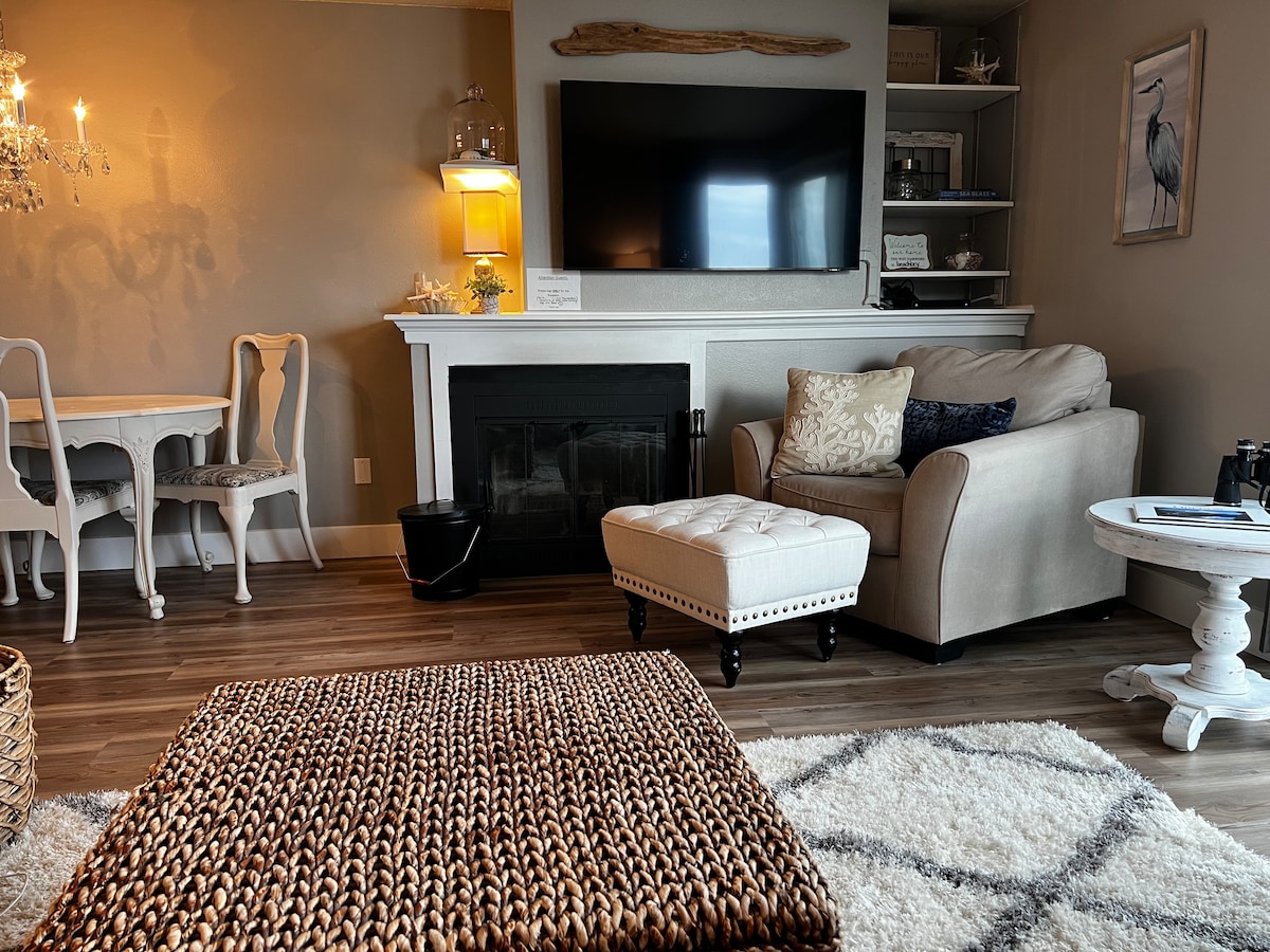 オレゴン州デポーベイの美しいダウンタウン中心部に位置する、新しく改装されたオーシャンフロントの宿泊施設へようこそ。 ワイングラスを片手にパティオでホエールウォッチングをしたり、スタイリッシュなリビングエリアで暖炉のそばでヴィンテージレコードを聴いたり(機能します! )できます。すべてのお店やレストランから徒歩圏内です。 寝室にはクイーンベッド1台、居間にはツインベッド1台と引き出し式布団が1組あり、大人4名様までご宿泊いただけます。 仕事専用スペース。ベビーベッドとハイチェアが利用可能です。犬OK。ワン!