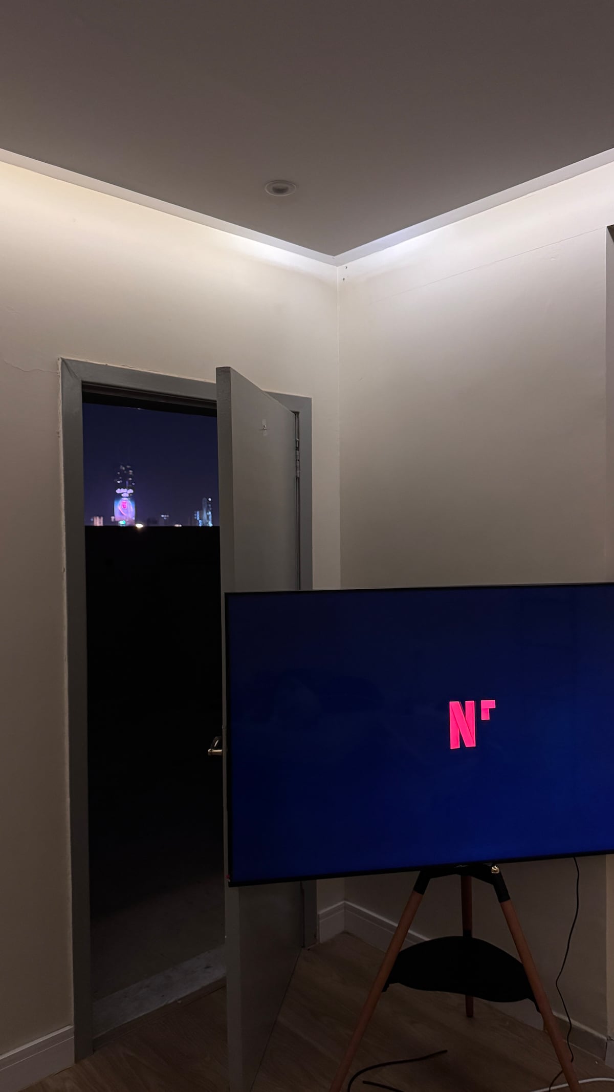 إستديو أنيق بشاشة 65 وجلسة خارجية
