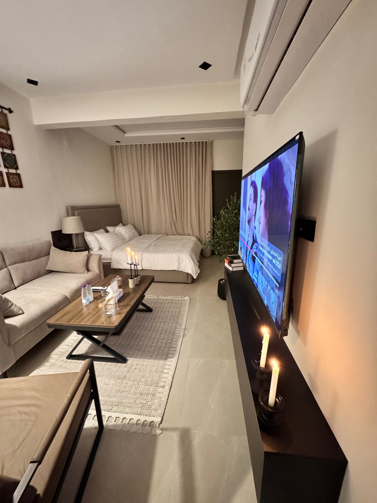 • 📺 برنامج ترفيهي فاخر يشمل جميع القنوات الرياضية والعالمية • 🎬 منصة أفلام ومسلسلات متنوعة بجودة عالية • 🌐 واي فاي فائق السرعة • 📺 شاشة ذكية 65 بوصة لتجربة مشاهدة سينمائية • 🛏️ غرفة نوم فاخرة بتصميم راقٍ • 🛌 سرير إضافي عند الطلب برسوم • ✨ ديكور عصري بلمسات فندقية راقية • 🍽️ مطعم متوفر في نفس البناية • ☕ كوفيات جميلة جدًا بالقرب من الموقع • 📍 موقع استراتيجي مميز يسهل الوصول إليه • 🕊️ خصوصية وهدوء تام