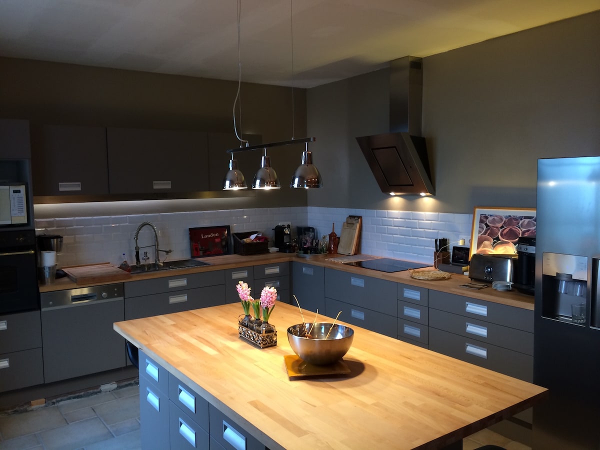Upscale fully renovated cottage from the end of the 18th century. 5 large bedrooms, fully equipped kitchen, large dining/living room with insert fireplace, exquisite 2nd floor living space with sofa, 75-inch TV, foosball table (baby-foot), high-speed WIFI (fiber optic). Fully enclosed backyard with patio areas, outdoor sitting, ping-pong table and BBQ. Very quiet environment to enjoy french countryside. Pets are conditionally allowed. Please reach out about this before booking.