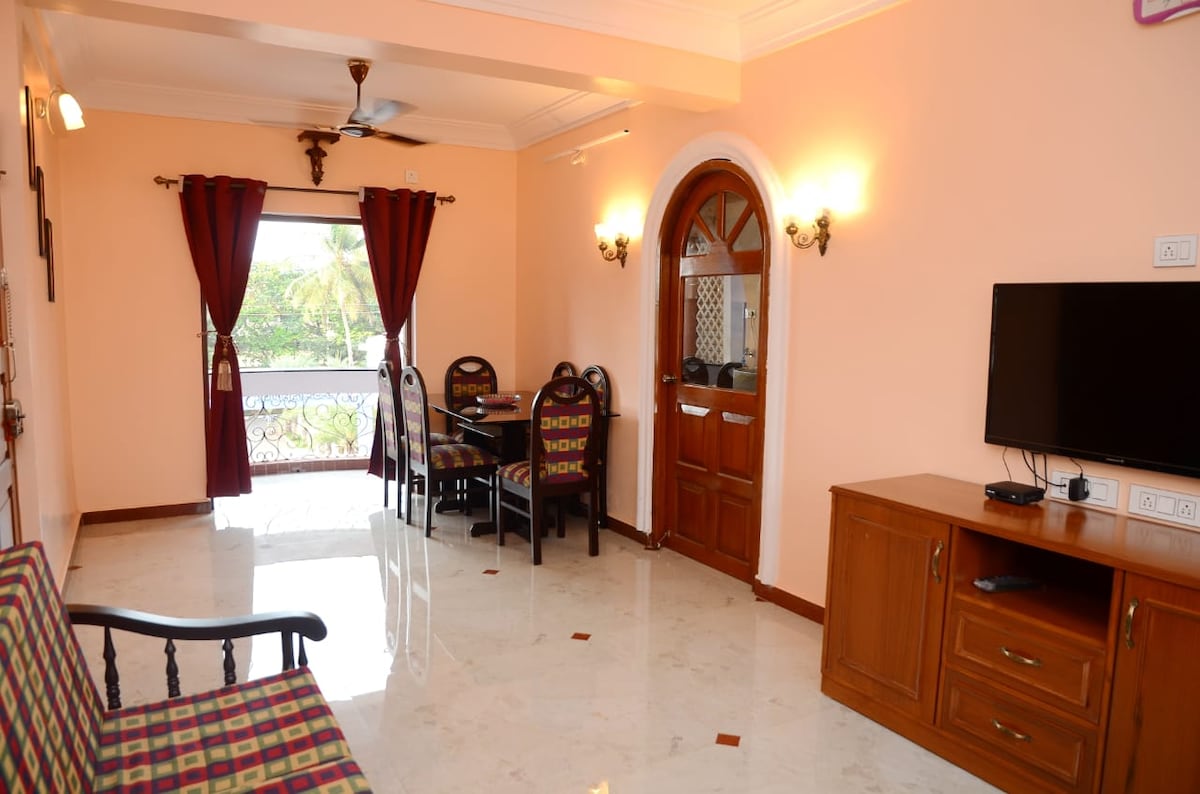 パンジムでの休暇が待っています! ミラマールビーチからわずか800 m (徒歩10分)のパンジムにある、家具が完備されたプレミアムな2 BHKアパートに滞在しましょう。 エアコン完備の客室、バルコニー、Wi-Fi、プール、モダンなキッチンをご利用いただけます。短期休暇やワーケーションに最適です。 24時間年中無休のセキュリティを備えた安全なゲート付きコミュニティにあり、カフェ、モール、主要な観光スポット、市内の有名なフローティングカジノ(車で10分)へのアクセスも簡単です。 4人宿泊可能。タオル、洗面用具、基本的な調味料が含まれています。