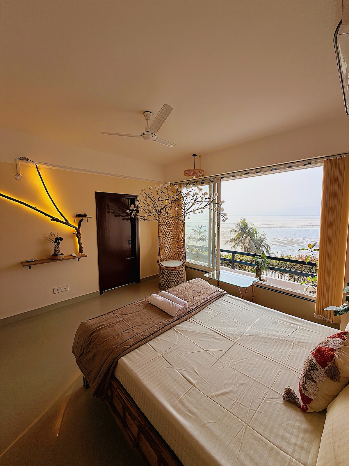 CasaVue is a premium 2BHK river-view stay overlooking the Brahmaputra and the iconic Umananda Temple. The home features two spacious bedrooms with attached bathrooms, AC, geysers, hotel quality linens, and a smart TV with high-speed Wi-Fi. A large balcony, cozy boho interiors, and a peaceful environment make it ideal for families and couples seeking a luxurious yet homely stay,perfect for both short and long stays.