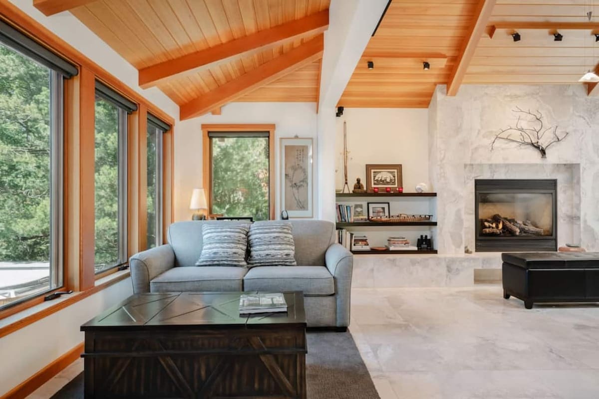 町から4マイル先にある1,000平方フィートのカスタムコテージ。 ホストのChrisさんとTomさんは、オアシスをあなたと共有することに誇りを持っています。 きれいに装飾された広々としたオープンなリビングエリアには、勾配のある天井、花崗岩のカウンタートップを備えたフルキッチンがあります。 バスルームとランドリールームで区切られた2つの寝室は、プライバシーと安らぎの睡眠を保証します。 2組のカップルに最適です。 町とアメリカンキャンプの中間に位置し、何マイルものハイキングコースと自転車ルートへ簡単にアクセスできます。 町からわずか数分で田舎を体験できます。