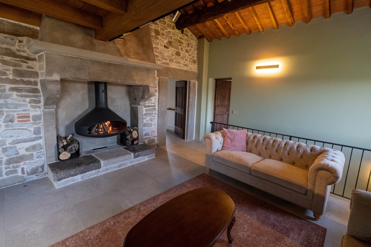 ヴァルダルノの素晴らしい眺めを望む完全にリフォームされたロケーション。1階は、パティオに面した2つの窓、暖炉、ソファーベッド、シャワー付きのバスルーム、BBQ付きの屋外ダイニングエリアにアクセスするための3つのドア、スチールアイランド付きのモダンなキッチンを備えたリビングルームで構成されています。 2階は、シャワー付きの専用バスルームを備えた2つのダブルベッドルームで構成されています。 手入れの行き届いた庭には、リラックスできるエリアがいくつかあり、日光浴ができるインフィニティ・プールがあります。