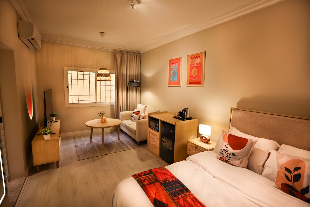 大通りとエンターテイメント会場の近くにある高級アパート(寝室1部屋とリビングルーム) 24時間365日対応のスマートロックで、いつでもセルフチェックインをお楽しみください。 レストラン、カフェ、薬局、スーパーマーケットなど、すべての必須サービスに囲まれた最高のロケーションです。 リヤドの中心部にある快適な滞在先で、モダンなデザイン。リラックスしたい方や最高のロケーションを求める方に理想的な体験を提供します。