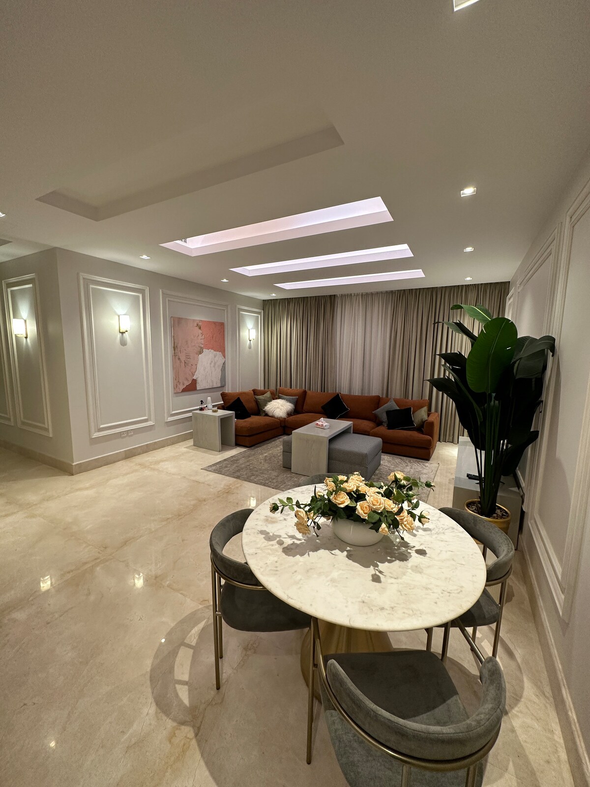 Enjoy an upscale stay in a modern apartment located in the heart of Hittin, one of Riyadh’s finest neighborhoods. The apartment is carefully furnished for maximum comfort, featuring elegant furniture and contemporary touches. 📍 Location: Minutes from Boulevard Riyadh, Sports Boulevard, Kingdom Arena, top malls, and fine dining. ✨ Features: • Modern, comfortable design • High-quality bed and linens • Smart TV & free Wi-Fi • Fully equipped kitchen • Self check-in • Free parking