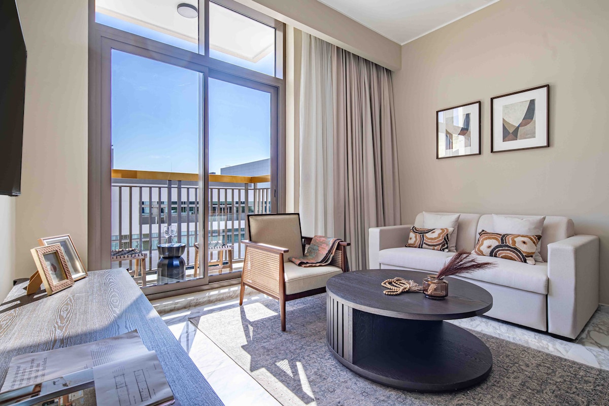 Our thoughtfully designed 1-Bedroom Family Apartment is located in the heart of Dubai's Palm Jumeirah, just opposite the famous Nakheel Mall. The apartment has a fully equipped kitchen and is situated within a fully-serviced 5-Star lifestyle hotel, the Andaz Dubai The Palm by Hyatt. The apartment provides you with access to a range of amenities, such as access to the community's beach and family pool overlooking Burj Al Arab, several restaurants and adults-only relaxation areas (Ora Spa).