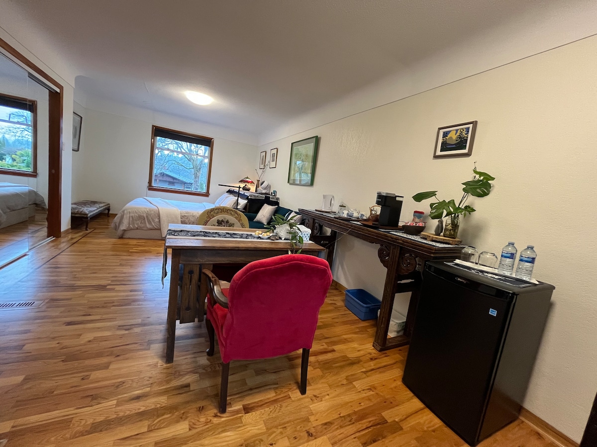 Uvicキャンパス、Camosun College Lansdowneキャンパス、Uplandsゴルフクラブからわずか数歩の場所にある、専用玄関のある完全認可の「ラグジュアリースタジオアパートメント」へようこそ。この独立したアパートは、冷蔵庫、コンロ、電子レンジ、洗濯機/乾燥機、コーヒーメーカー、トースター、電気暖炉、アイロン、アイロン台、Wi-Fi、テレビ、YouTube Premium、リクエストに応じてベビーベッドをご用意できます。BBQ!! 主要なバス路線上にあり、敷地内に無料駐車場があります。 明るく、快適で清潔です!