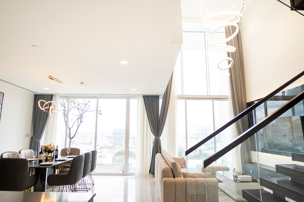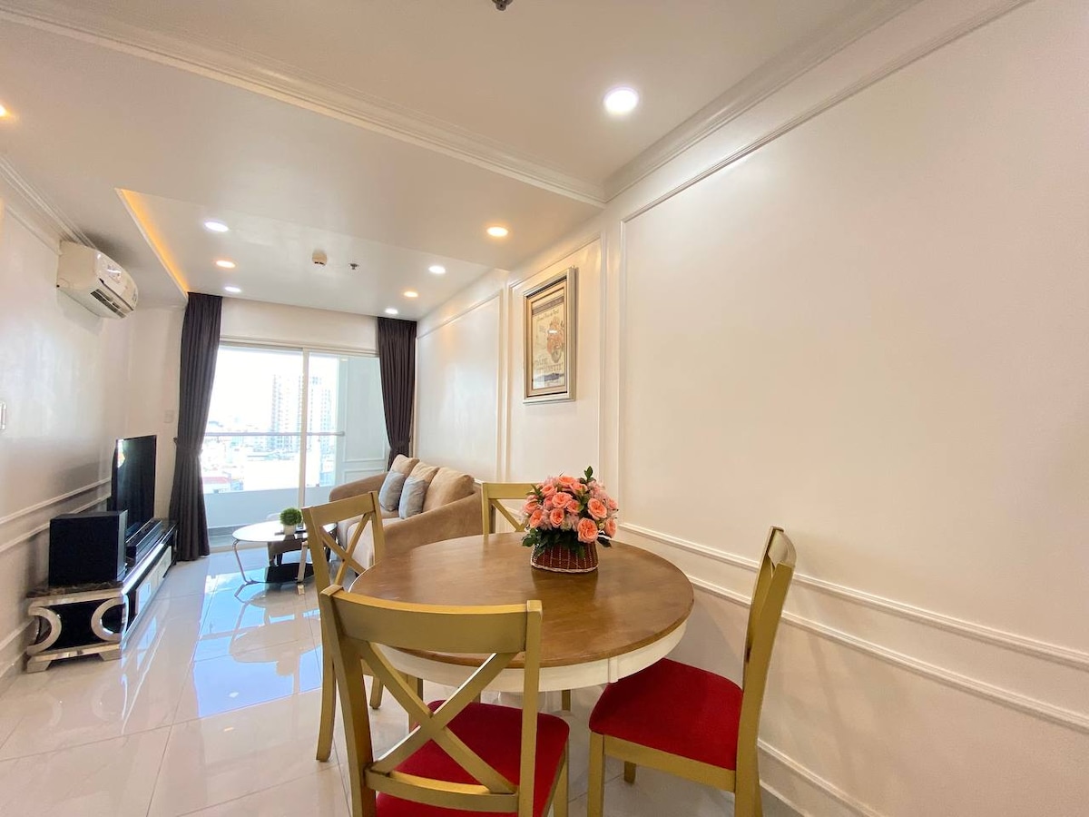 レマンビル最大の2ベッドルームレイアウトの私たちの家でサイゴンの生活を体験してください。自然光に包まれた大きな出窓から街の景色を眺めましょう。清潔なリネンを備えたキングサイズのベッドでリラックスしましょう。屋上のジムとプールをご利用いただけます。 市内の主要なランドマークの中心部にあり、スターバックスやスーパーマーケットがすぐそばにあり、比類のない利便性を約束します。 Homes By IDG (I Do Good)でサイゴンの中心部の宿泊先をご予約ください