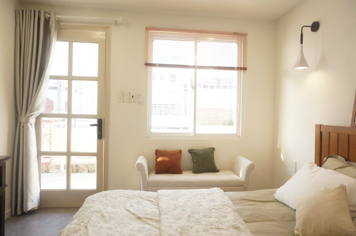 この穏やかで中心部に位置する場所でシンプルに過ごしましょう。 5階建てのヴィラ内にある広々とした27平方メートルの最近改装されたスタジオ。大きな窓と小さなバルコニーがあり、明るく新鮮な空気を楽しめます。快適なクイーンベッド、ワークデスク、ソファベッド、Netflix付きスマートテレビ。D1、D10、そして空港に近い中心部に位置しています。本格的なレストラン、居心地の良いカフェ、賑やかなショッピングストリート、CGVやMega GSなどの映画館まで徒歩圏内です。快適さ、スタイル、利便性が融合したこの宿泊先は、長期滞在に最適です。