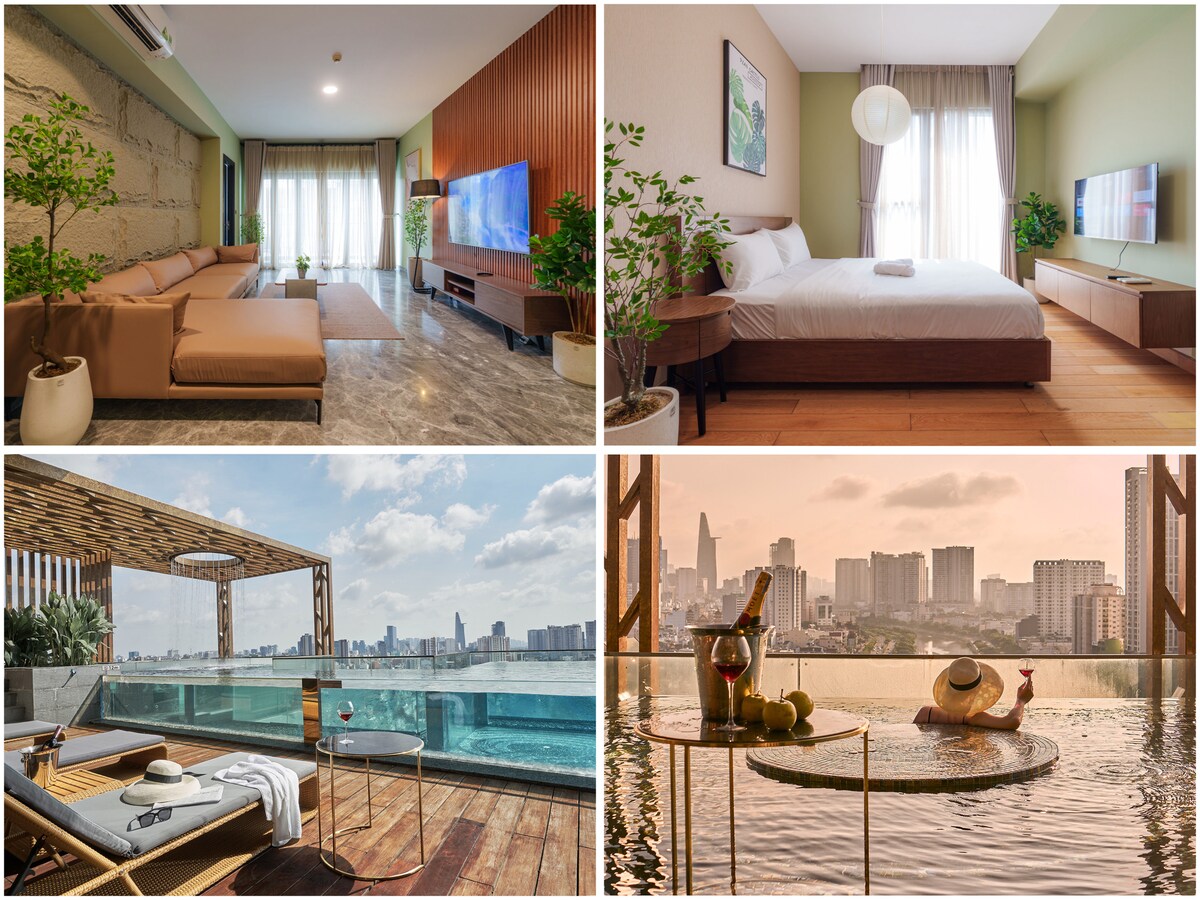 The apartment is beautifully designed in Wabi Sabi style located in D1Mension Residences building, District 1 apartment center, artistic style, high-class resort amenities, special rooftop swimming pool _ spa pool _ sauna room, gym_ showroom, private office, garden fish pond, 4' pizza right in the lobby, garden BBQ area, children's play area, spacious waiting room, All bedroom windows and balconies are airy, unique, luxurious, classy apartment