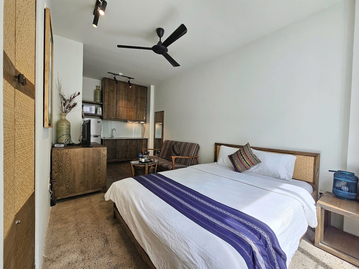 - A stylish studio of Mersey Ben Thanh Saigon Apart'Hotel - a member of HoLo & Mersey Hospitality. - LARGER GROUP can book other rooms to stay here together. - Close proximity to Ben Thanh Market, Nguyen Hue, Pham Ngu Lao & Bui Vien Area - New& Stylish designed Studio - Surrounded by all tourist attractions - Private kitchen & Private bathroom - Potential for noise - No Smoking - Pet are not allowed - Deposit & Utility Bills for long-stay to be informed at the time of inquiry
