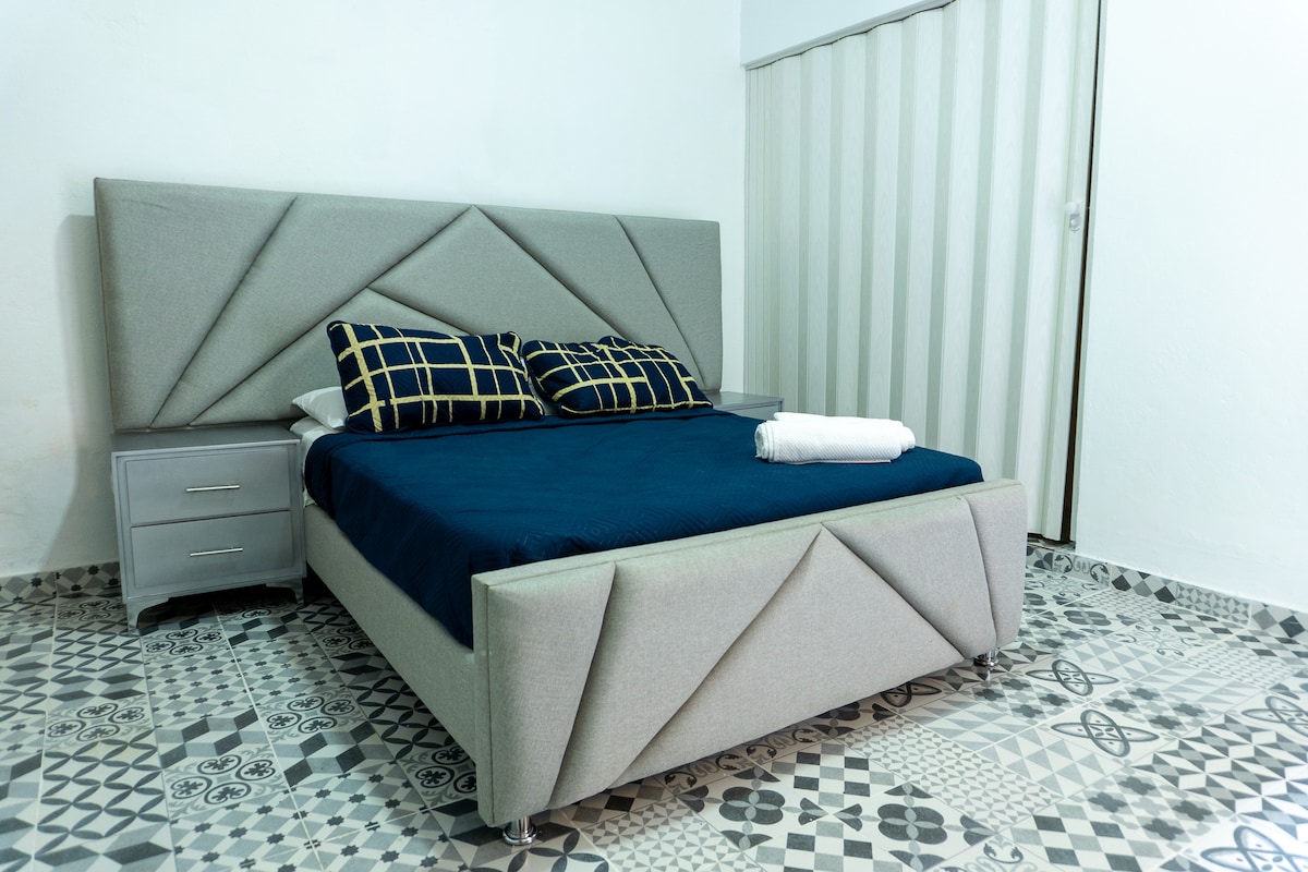 Acogedor apartamento en el corazón de Santo Domingo, cuenta con una zona verde para hacer ejercicio a 2 min caminando y un Mall a 4 min caminando con supermercado, farmacia, bancos zona de comidas, etc. Apartamento de dos habitaciones con aires acondicionados cada una. Cómodo balcón; una sala luminosa, comedor para cuatro personas. un baño y medio baño para visitas La cocina cuenta con todos los utensilios que puedas necesitar. Vigilancia las 24 horas.