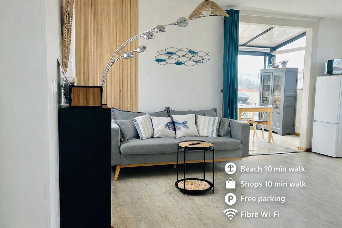 🏠 Bienvenue dans l'appartement Soleil & Sable, idéalement situé à deux pas du bord de mer et du centre ville. Dès votre arrivée, la véranda baignée de lumière vous invite à la détente. Tout a été conçu pour votre bien-être : Deux chambres avec lits 160 x 200, ou lits individuels. Cuisine très bien équipée, Douche italienne, La Terrasse et véranda pour des moments de détente ensoleillés. Fibre et télévision grand écran pour votre confort. Terrasse pour savourer vos repas en plein air.