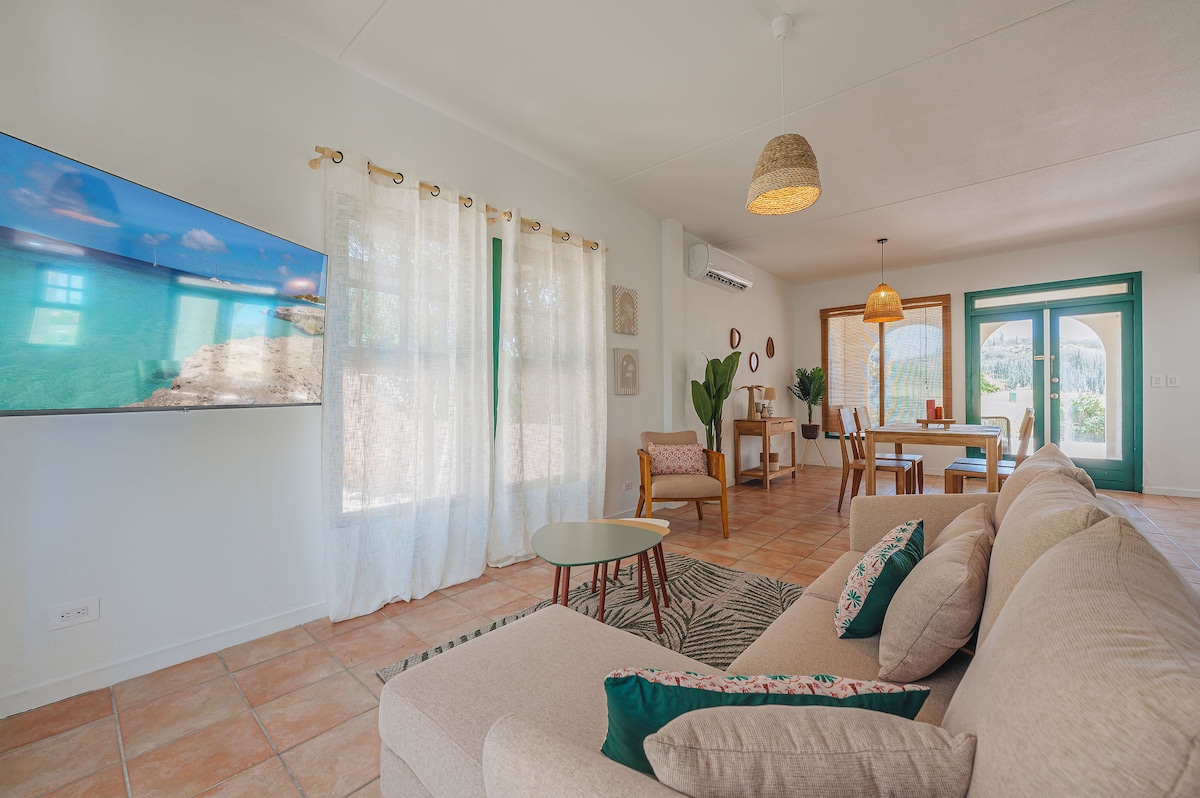 アルバの新しい宿泊先へようこそ。ここは豪華さと美しさ、利便性が融合した場所です。 活気ある高層ビル街から車でわずか2分の場所にあるこの新築アパートは、島の雰囲気を味わえる完璧な場所です。 クリスタルのように透明な海、息をのむような夕日、そして完璧なスキューバダイビングスポットで有名な、手つかずの自然のままのボカカタリナビーチとアラシビーチまで車で1分のんびりと向かい、1日を始めることを想像してみてください。 これらのビーチは、玄関からすぐの場所で、忘れられない体験を提供します。