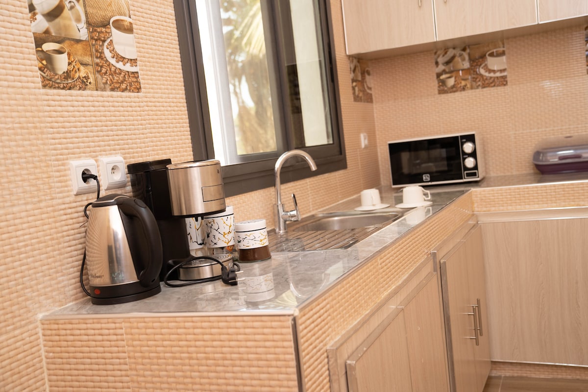 私たち家族のヴィラの1階にあるこの魅力的なワンルームで、快適でリラックスした時間をお過ごしください。 お部屋は、180x190cmのダブルベッドを備えた寝室、バスルーム、ソファベッド、スマートテレビ、バーテーブル、冷蔵庫、電子レンジを備えた広々とした快適なリビングルームで構成されています。 電気代金は、wyofalメーターのリチャージを通じて旅行者の負担となります。