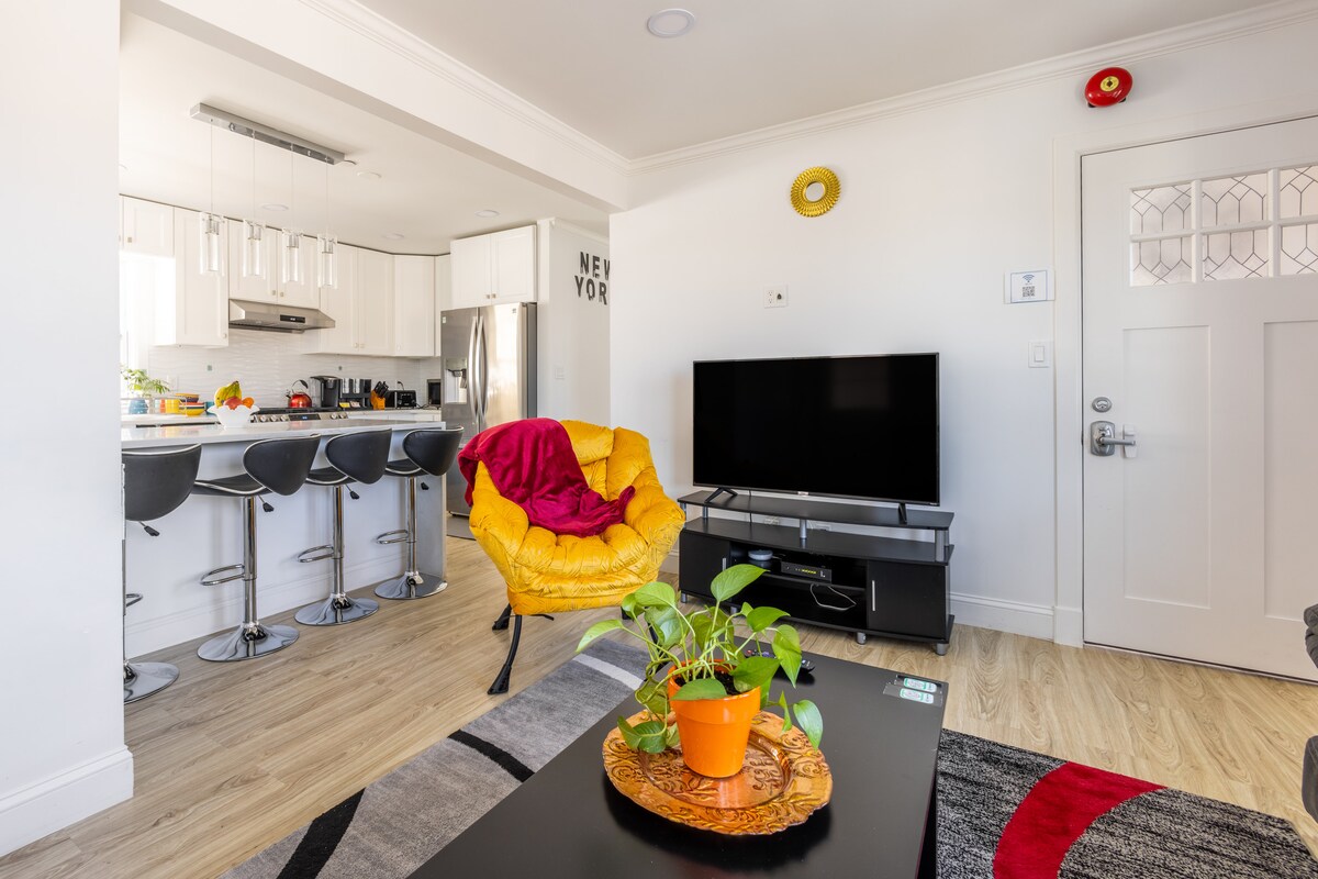 ドブスフェリーの中心部にある明るくモダンな1ベッドルーム。静かな通りにあり、ニューヨーク市への電車まで徒歩6分(グランドセントラルまで30分)。川の景色が見えるオープンコンセプトのレイアウト、高速Wi-Fi、仕事机付きの独立した寝室。最高のカフェ、レストラン、バー、リバーフロント、ショップ、トレイルまで徒歩で行けます。すぐ目の前の路上駐車が簡単です。リモートワーカー、カップル、家族、クリエイティブな方々に最適で、街へのアクセスが便利で、スタイリッシュで穏やかな滞在を求める方に最適です。最大4名様まで宿泊可能です。リクエストに応じてベビーベッドをご用意いたします。