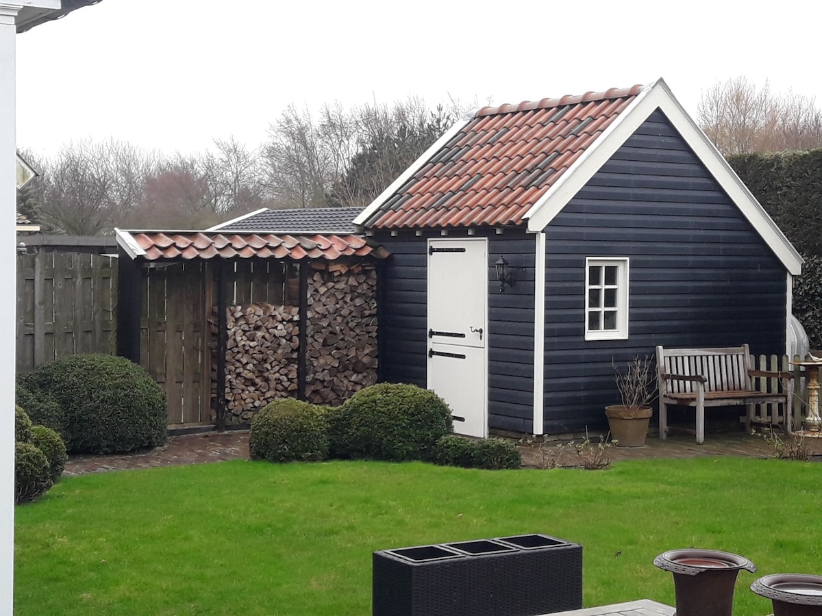 スタジオ・デュインハウス...暖炉のある特別に設計された木造の家は、バッドパビリオンの向かいの丘の上にあり、ビーチへの入り口から100mの距離にあります! 海辺の小さなアトリエで暮らし、庭のゲストハウスで人々を歓迎することは私の人生の夢です。典型的なゼーラントの家は、外側の日当たりの良い木製テラスに窓を開けます。ここまで海が聞こえます。 居心地の良い眠りのギャラリーが家を特別なものにし、サウナは自発的に予約可能です!