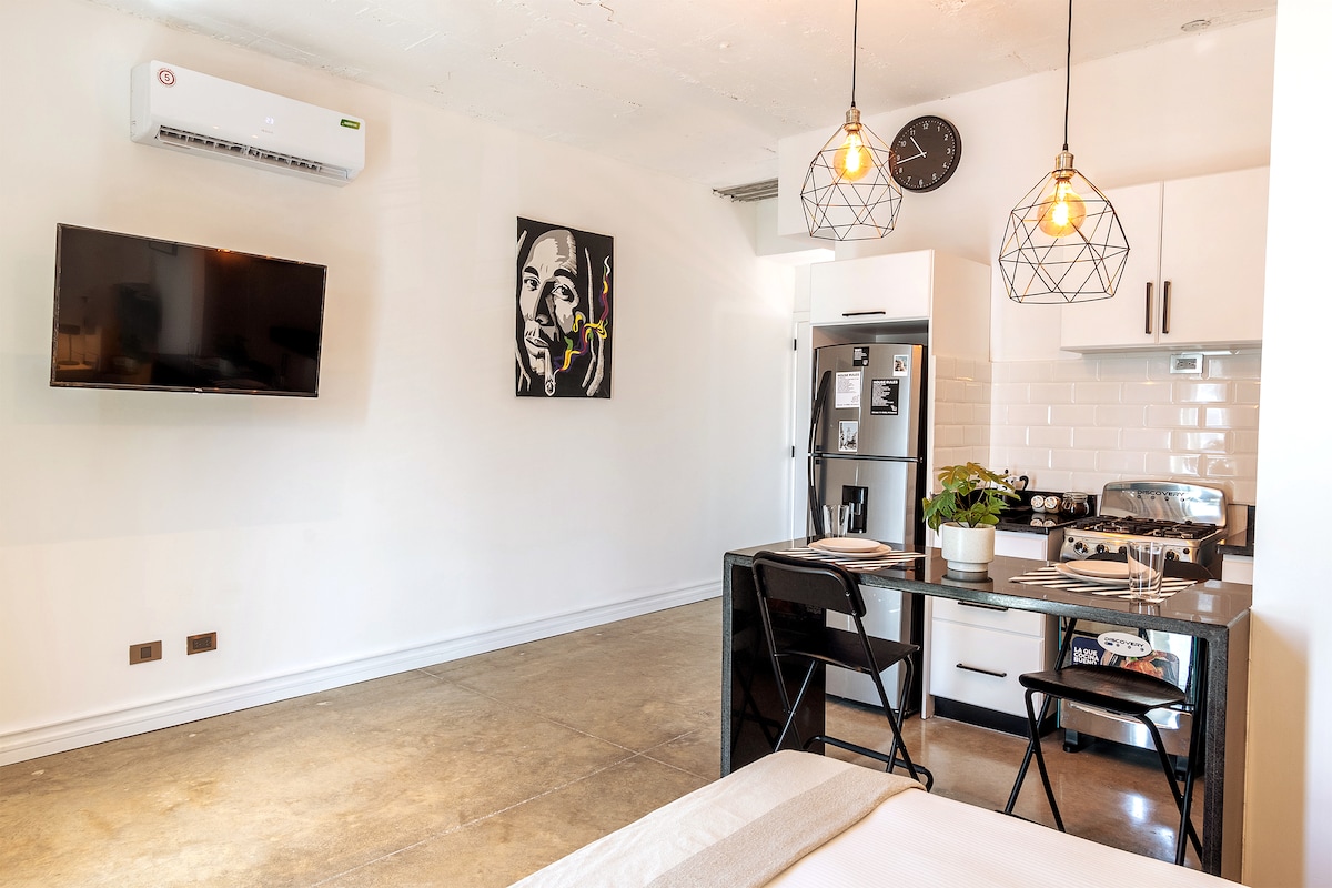 サントドミンゴの中心部に位置する静かな住宅地にあるフランス人デザイナーの家の2階にあるモダンなデザインのロフト。独立した入り口と専用テラスがあり、ミラドール・スール公園から数分です。都会と自然が調和して融合した空間です。大きな窓から差し込む自然光が、土色と鮮やかな緑のトーンを際立たせます。専用テラス付きのロフトは、街の中心部にある魅力的な隠れ家的空間です。