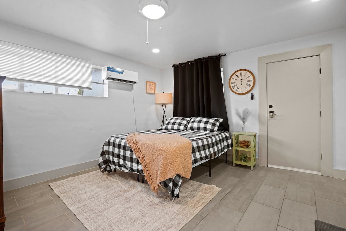 * 2025年9月新しいベッド/2024年8月新しいエアコンミニスプリット* NMSUとオールドメシラまで数分で行ける静かな袋小路と平和な着陸地点。I -10とI -25へのアクセスが簡単です。ゴルフコース、ショッピング、ラスクルセスとメシラの美しさに近いです。 カシータへの専用玄関、ダイニングテーブルと快適な寝室を備えたパティオ、浴槽とシャワーを備えたバスルーム、Wi-Fi、コーヒーステーション、小さな冷凍庫付き冷蔵庫、電子レンジ。 近くには素晴らしいハイキングコースがあり、ホワイトサンズ国立公園とELP空港まで60分以内です。
