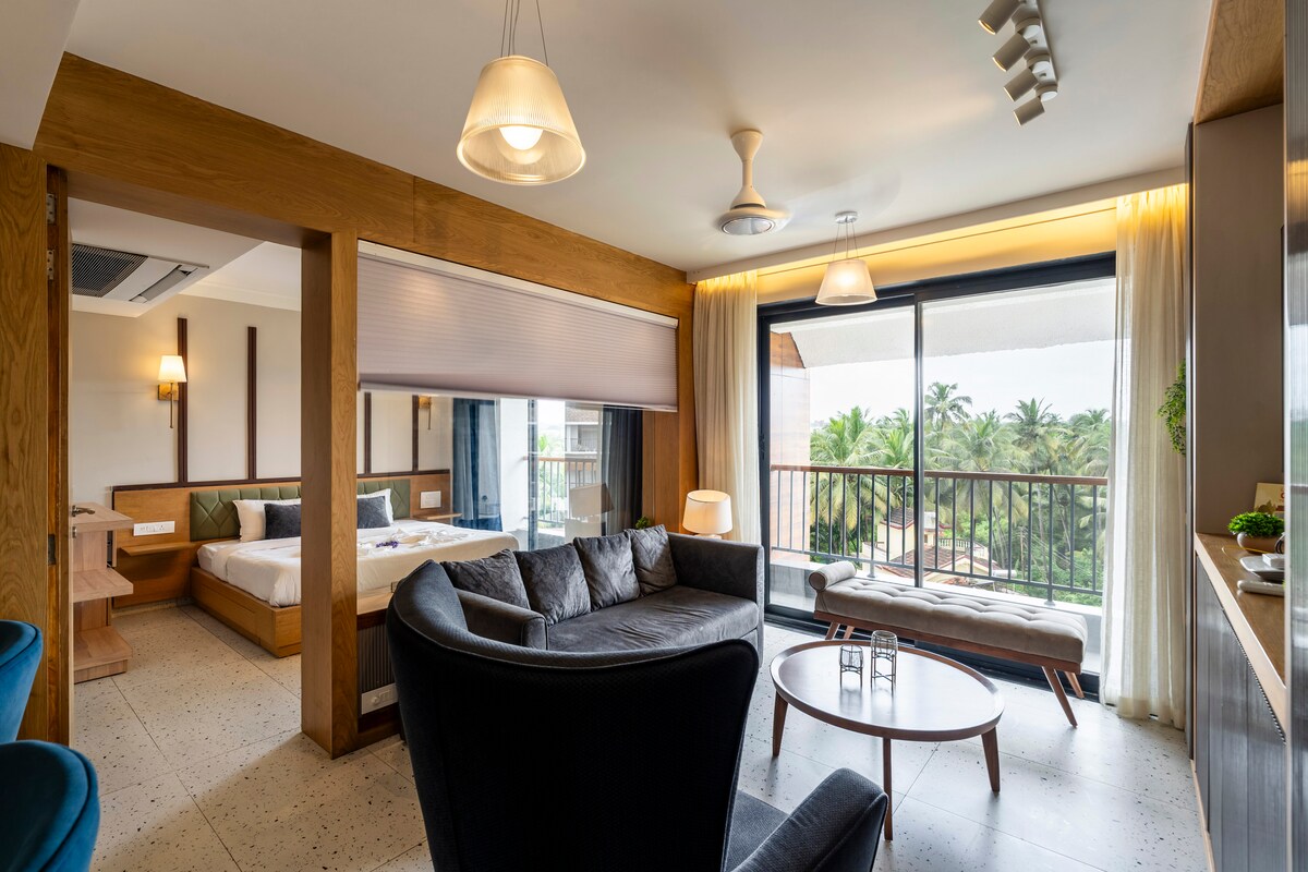 Kanso by Earthen Windowは、シオリムにある静かな1BHKで、大地、光、そしてプライバシーを中心に作られています。 ゆっくりとした朝と慌てのない夜のために設計されたインテリアは、石灰で洗われた壁、柔らかいマイクロコンクリートの床、そしてヴィラのような魅力を与える厳選されたオブジェで仕上げられています。 寝室は専用ガーデンテラスとジャグジー付きのマイクロコンクリート製の隠れ家的なホットタブにつながっており、どちらからも緑の森が一望できます。共用アメニティには、プール、スチームルーム、ジム、24時間365日対応のセキュリティが含まれます。