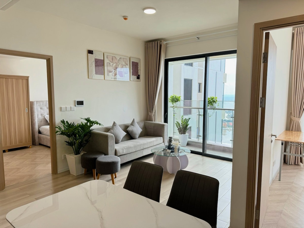 モダンで豪華なアパートへようこそ アパートには2つの寝室があり、2つのウィング冷蔵庫、電気コンロ、オーブン、電子レンジ、洗濯機...お部屋は清潔で整頓されており、中に入るとすぐに快適に過ごせるようにしています。 屋外では、海水プール、ジャグジー、子供用プレイエリア、無料ジムなどの設備をお楽しみいただけます。 私は常に、最も快適で安全で快適なリビングスペースを提供することを目指しており、ご滞在中はお手伝いいたします。