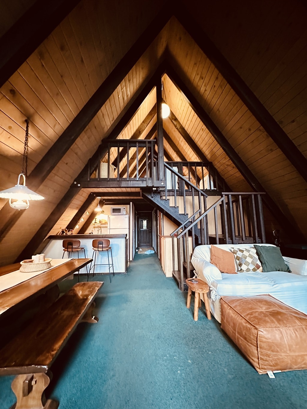 It is an A-frame cabin on stilts amongst the towering pines of the High Sierras of Northern California. At 5000 feet of elevation, it provides a perfect setting for an ultimate mountain getaway. The cabin has a rustic vibe, and is furnished with thoughtful details. It is remote, yet minutes from groceries, restaurants, the river, and one of the most treasured trees on the planet, the Sequoias.
