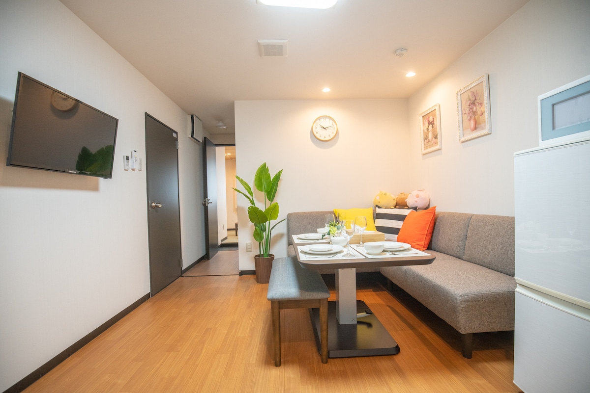 大阪のアパートへようこそ。快適でモダンなアパートでリラックスして、休暇をお楽しみください。快適で設備の整った宿泊施設を提供することを目指しています。 私のアパートは13階の7階にあります。これは建物内で最も広いコーナーハウスタイプで、リビングルーム1室、ベッドルーム3室、キッチン1室、バスルーム1室、専用トイレ2室、コーナーバルコニー1室があります。すべての客室には、無料の無制限Wi-Fi、大画面スマートテレビ、ヘアドライヤーなど、高級家電と各種アメニティが備わっています。バスルームには暖房、バスタブ、シャワーが備わっており、リラックスしてテレビ番組を見ることができます。キッチンには必要なものがすべて揃っていますので、ご希望であればご自身でお料理いただけます。 アパートは大阪市中心部にあります。活気に満ちた繁華街がすぐそこにあるので、非常に便利です。1階には7-11コンビニがあり、周りにはバーベキュー、焼き鳥、ラーメン屋から、精巧な寿司や刺身を提供する大きなレストランまで、さまざまな素晴らしいレストランがあり、いつも日本の味を楽しめる場所が見つかります。また、アパートは繁華街の中心部にあり、行きたい場所への旅行に便利です。道頓堀と有名な黒門市場はホテルから徒歩わずか3分で、なんばや心斎橋までは10分以内に徒歩で行くことができます。また、ここから地下鉄やJRで直接京都、奈良、神戸に行くことができます。 ご予約後、Airbnbを通じてご連絡いただければ、できるだけ早く返信いたします。私は近くに住んでいますので、必要な場合はいつでも連絡してください。完璧な滞在をさせるために最善を尽くします