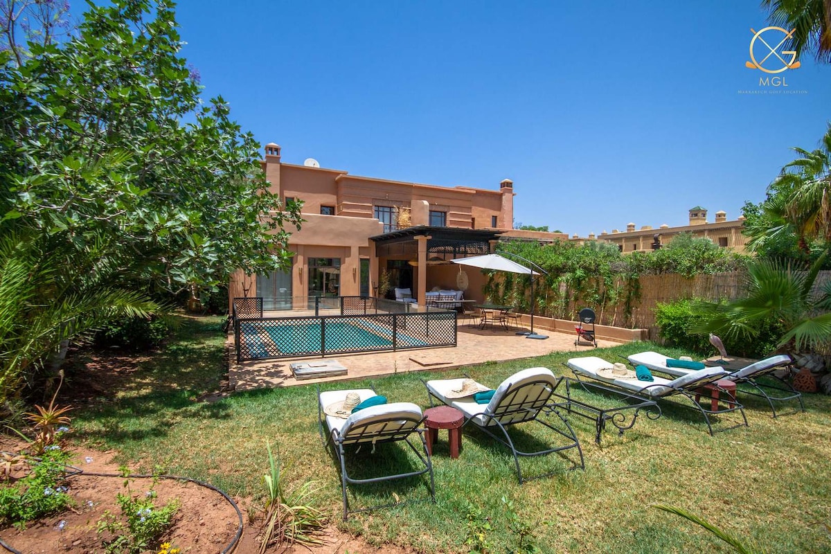 Discover our villa at the Beautiful Samanah Golf Club, offering peace and serenity. Just 15 minutes from the city center, and the airport, this 200 m² air-conditioned property features multiple terraces, a huge and private lush garden, and a private pool (heating is available on request) with stunning sunsets. Enjoy the magnificent Nicklaus-designed golf course and the sound of birds. Experience a Beldi Chic Moroccan atmosphere for an unforgettable stay. 24/7 security ensures your peace of mind.