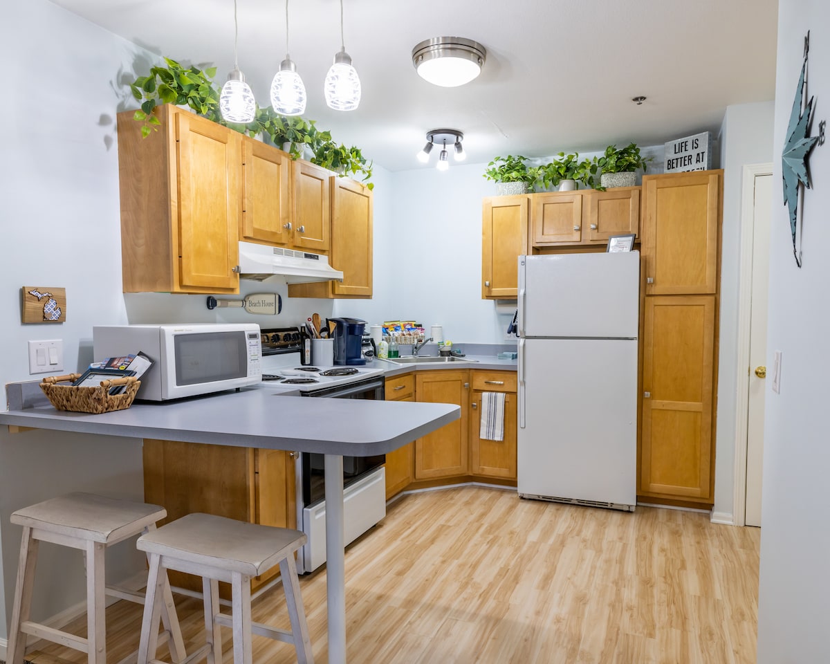 夏や秋の休暇にぴったりのアソシエーションプール付きの美しくリニューアルされたバケーションコンドミニアム。ミシガン湖とソーガタック・ダグラスのすべての楽しいアクティビティに近いです。ミシガン湖まで1マイル未満。ダグラスとオーバルビーチに近いです。ご自身の玄関ポーチでリラックスしたり、敷地内にある素晴らしいレストラン「Isabel's」まで数歩歩いてみてください。寝室1部屋、バスルーム1箇所、居心地の良いガス暖炉。リビングルームの引き出し式ソファで2名様が追加でお休みいただけます。繁華街への自転車道に近いです。