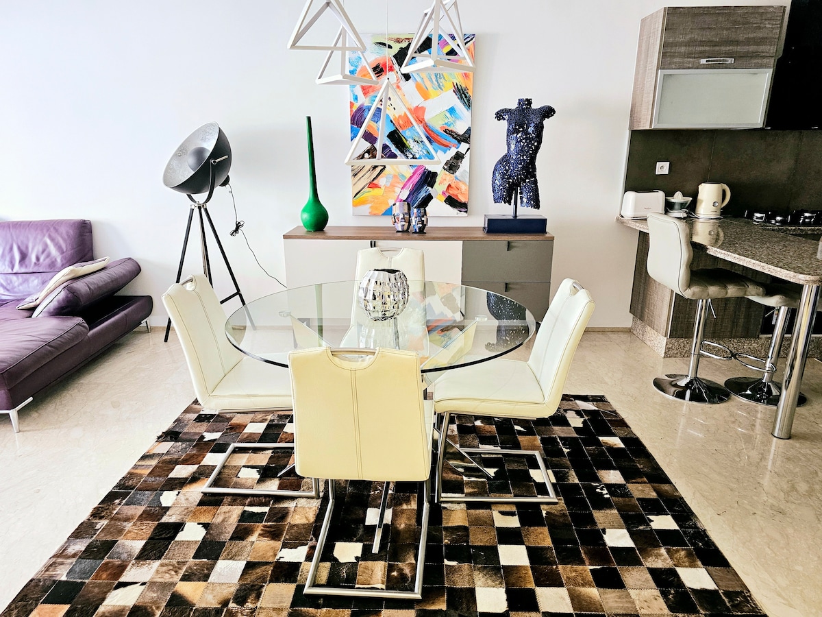 Appartement ensoleillé, chaleureux et hors pair, idéalement situé dans une résidence neuve en plein coeur du quartier mythique, Guéliz, avec une vue sur le Mall Carré Eden, très bien asservi et proche de toutes commodités. Moderne avec une touche marocaine, il est aménagé pour que vous vous sentiez chez vous, c'est le point de départ idéal pour profiter des merveilles de Marrakech ainsi que pour y séjourner pour un voyage d'affaire. Il est également parfaitement adéquat au télétravail.
