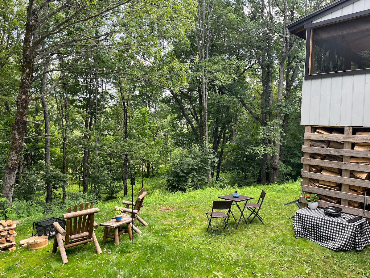 Rennsli Cabin is off grid + nestled on a forested plateau in the foothills of the Green Mountains. You will feel like you are in the middle of nowhere, unplugged and able to regenerate. Kitchen is equipped with cooking essentials, water, coffee, tea, milk, fresh eggs + homemade soap. It has an indoor compost toilet, outhouse + outdoor shower (May-Oct) Most seasons, the cabin is 100ft from parking, but weather conditions may require an 800 ft walk from parking at main house.
