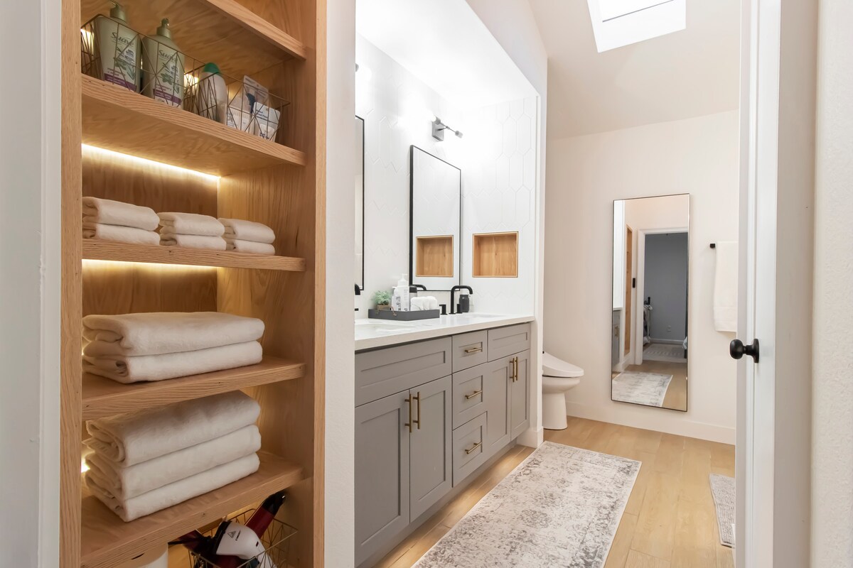 EADOの中心部に位置するこちらのモダンな宿泊先で、おしゃれな滞在をお楽しみください。 静かな滞在に最適な場所ですが、ビジネスハブ、エンターテイメント施設、レストラン、ショップ、ヒューストンのナイトライフからわずか数分です。 *無料の敷地内、2台分のガレージ駐車場 *1000 MBPSのWi-Fi *フルサイズの洗濯機・乾燥機 *PureSteam XL高出力ファブリックスチーマー&アイロン(スーツケースのシワがなくなります) *リビングには65インチ4K HDTV、寝室には50インチ *ゴージャスなフォトウォール *高品質で快適なマットレスで快適にお休みいただけます
