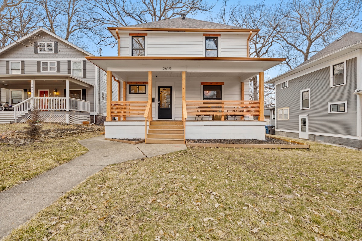 This comfortable bungalow is stylish with historic charm. The front porch is perfect for morning coffee. The main living space has original hardwood floors and classic brick fireplace with craftsman style built-ins. The house also has fenced in backyard with patio for enjoying temperate days. It is centrally and conveniently located close to Des Moines Playhouse, ~6 minutes from Casey’s Center and Downtown Des Moines, ~13 minutes to Jordan Creek Town Center, and ~15 minutes to DSM Airport.