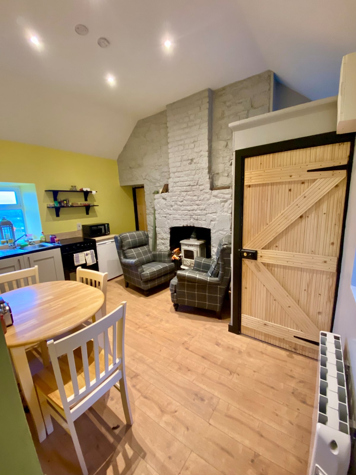 美しい伝統的な石造りの納屋を、現代的/インダストリアル/素朴なリビングスペースに変身させ、ユニークな雰囲気を演出しました。 ウィックローウェイ沿いのウィックローマウンテンズの牧歌的な丘陵地帯に位置し、オープンプランのキッチン/リビング/ダイニングスペース、中2階の寝室、広々としたウェットルームを備えています。増築部分には、追加のブーツルーム/素朴なバスルーム/トイレと舗装された中庭があります。敷地内には、2,000平方メートルの敷地に上下の芝生があります。 徒歩圏内にはカントリーパブがあります。