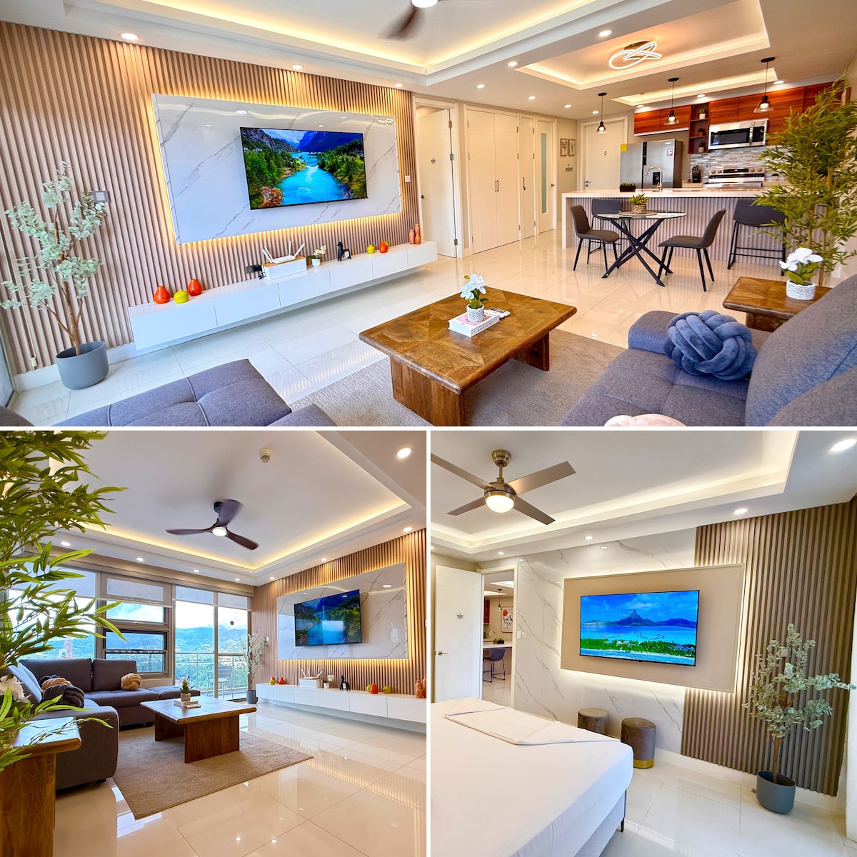 モダンな2ベッドルームのコンドミニアム ビーチ、空港、モールが近くにあります ビーチから数歩、空港やトップショッピングモールから数分のこの洗練されたモダンなコンドミニアムには、クイーンサイズのベッドルーム2部屋、引き出し式ソファベッド付きのリビングルーム、フルキッチン、ユニット内のランドリーがあります。共用プール、65インチテレビ、高速Wi-Fiをお楽しみください。カップル、ご家族、またはリモートワークに最適です。 波の音が聞こえるのも魅力です。 プールアクセス 24時間警備 広々とした駐車場