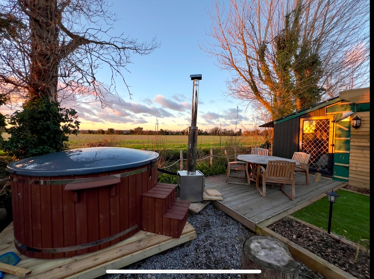 田舎の納屋、薪ストーブ、ホットタブ、ペットOK。