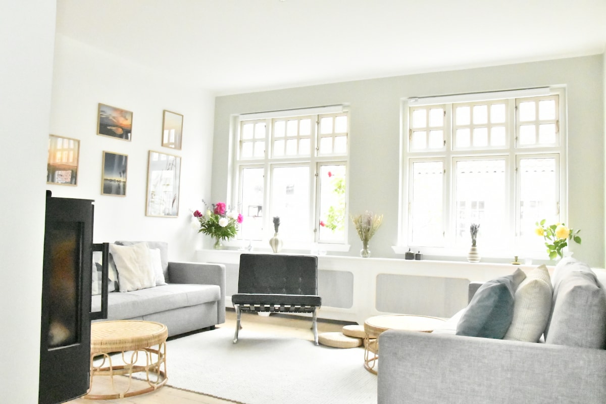 Visit one of Denmark's most popular islands and stay in a luxurious half-timbering house with an impressive fireplace. The house is hidden in one of the old gardens in the center of Ærøskøbing, 2 minutes walk from the ferry. Surrounded by your own quiet garden ¨the forest¨ where the big old gardens meet, with two private terrasses. The spacious 40 sqm house is newly renovated with modern comfort. The house is decorated with handpicked effects from our vintageshop ''TingGyden13''