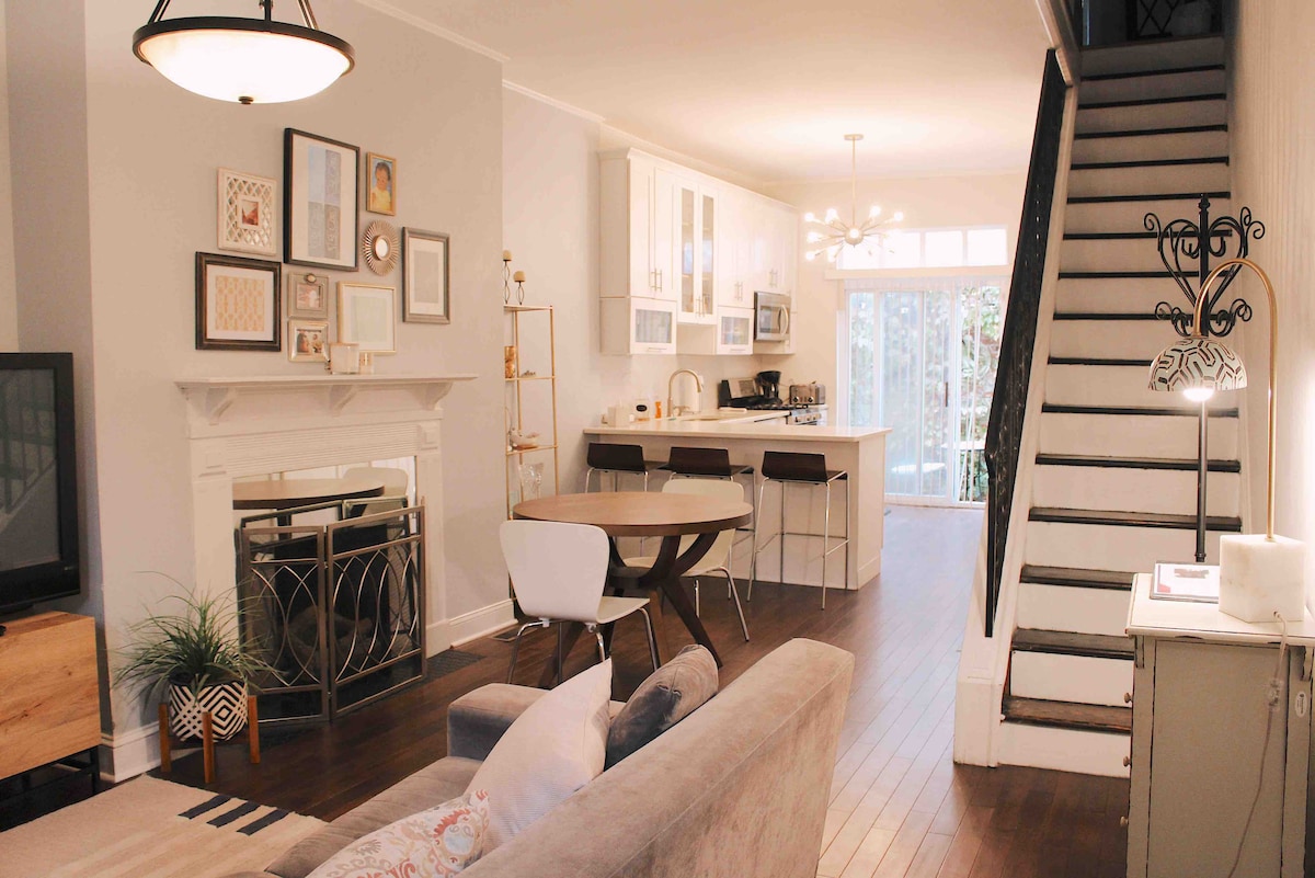 フィラデルフィアのオリジナルのガーデンオアシスに滞在しましょう。歴史的な並木道のあるエリアにある改装されたビクトリア様式の建物です。明るい2階建てのアパートで、ユニークな個性、旧世界の魅力、むき出しのレンガとモダンな快適さが融合しています。専用玄関からは、フルキッチン、バスルーム、ランドリーにつながります。2階の広々としたベッドルームスイートには、シーティングエリア、ワークステーション、50インチ4Kテレビがあります。静かですが、ペンシルバニア大学、ドレクセル大学、CHOP、HUPから歩いて行けます。博物館やダウンタウンからわずか数分です。定員1 ~ 3名(折りたたみベッドあり)