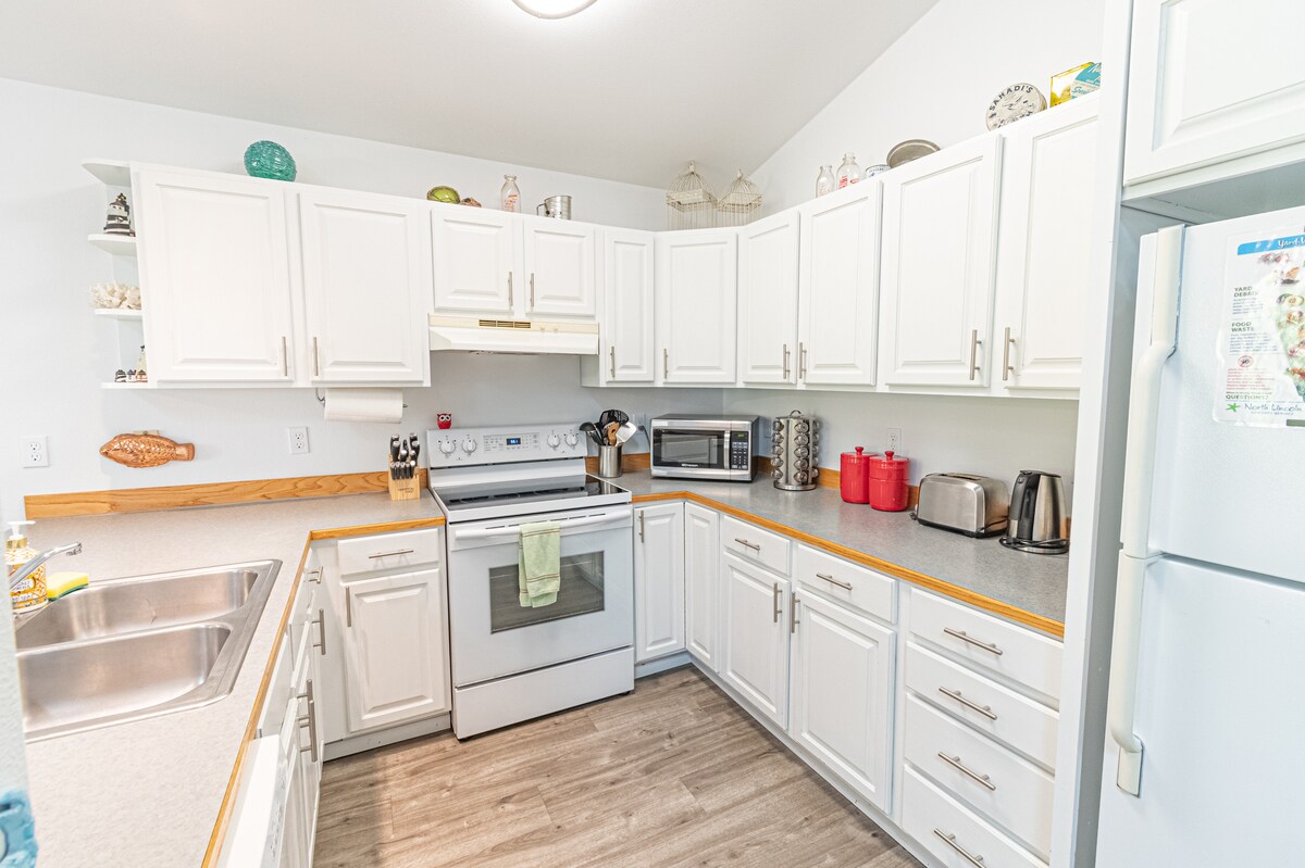オレゴン州の海岸での休暇に最適な、ファミリー向けのベイフロントコンドミニアムをお楽しみください! この空間は、リラックスした、明るく、温かみのある雰囲気になるように設計されています。 ご家族、ご夫婦、お友達が逃れて、自分たちだけの思い出を作ることができる場所になることを願っています。 マスターベッドルームにキングサイズベッド1台、ゲストルームにツインXL二段ベッドの下にクイーンサイズベッド1台、必要に応じてクイーンサイズのエアベッドもご利用いただけます。 最下階(湾のすぐそば! )のユニット。