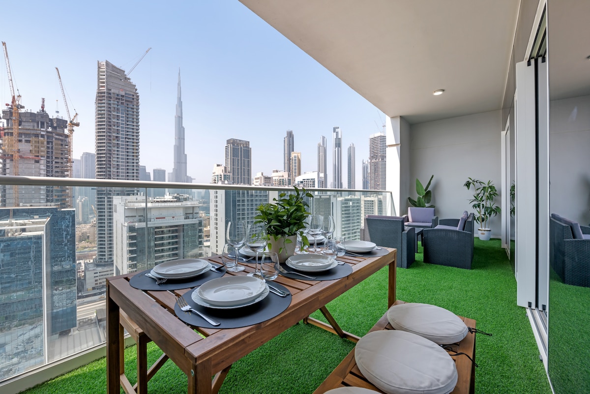 芝生のあるバルコニーから眺めるブルジュ・ハリファの眺め - ダウンタウン