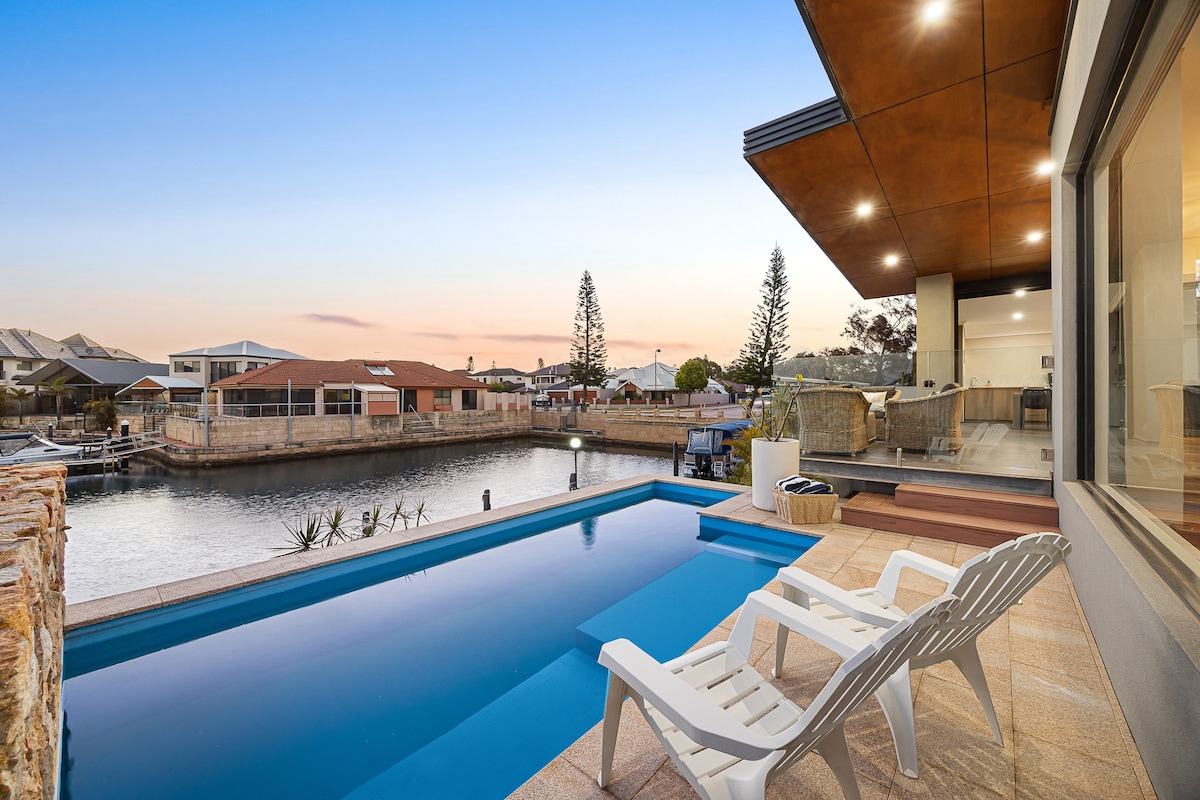 運河に面した広々としたリトリート|プール|スパ|桟橋