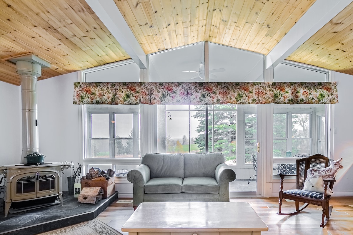 カントリーキャビンへようこそ。 この風光明媚な隠れ家は、ハイカー、サイクリスト、ゴルファー、スキーヤー、グルメ、自然愛好家に愛されているマルマーの美しい丘の景色を望む崖の上にあります。 トロントのダウンタウンからわずか90分ですが、このキャビンはまるで別世界にいるかのような気分にさせてくれます。 このプライベートな敷地内の45エーカーの広さを探索してください。野原、森、小川、果樹、養蜂場、泳ぐのに最適な湧き池があります。 敷地内にある他の建物は、私たち家族の家だけです。
