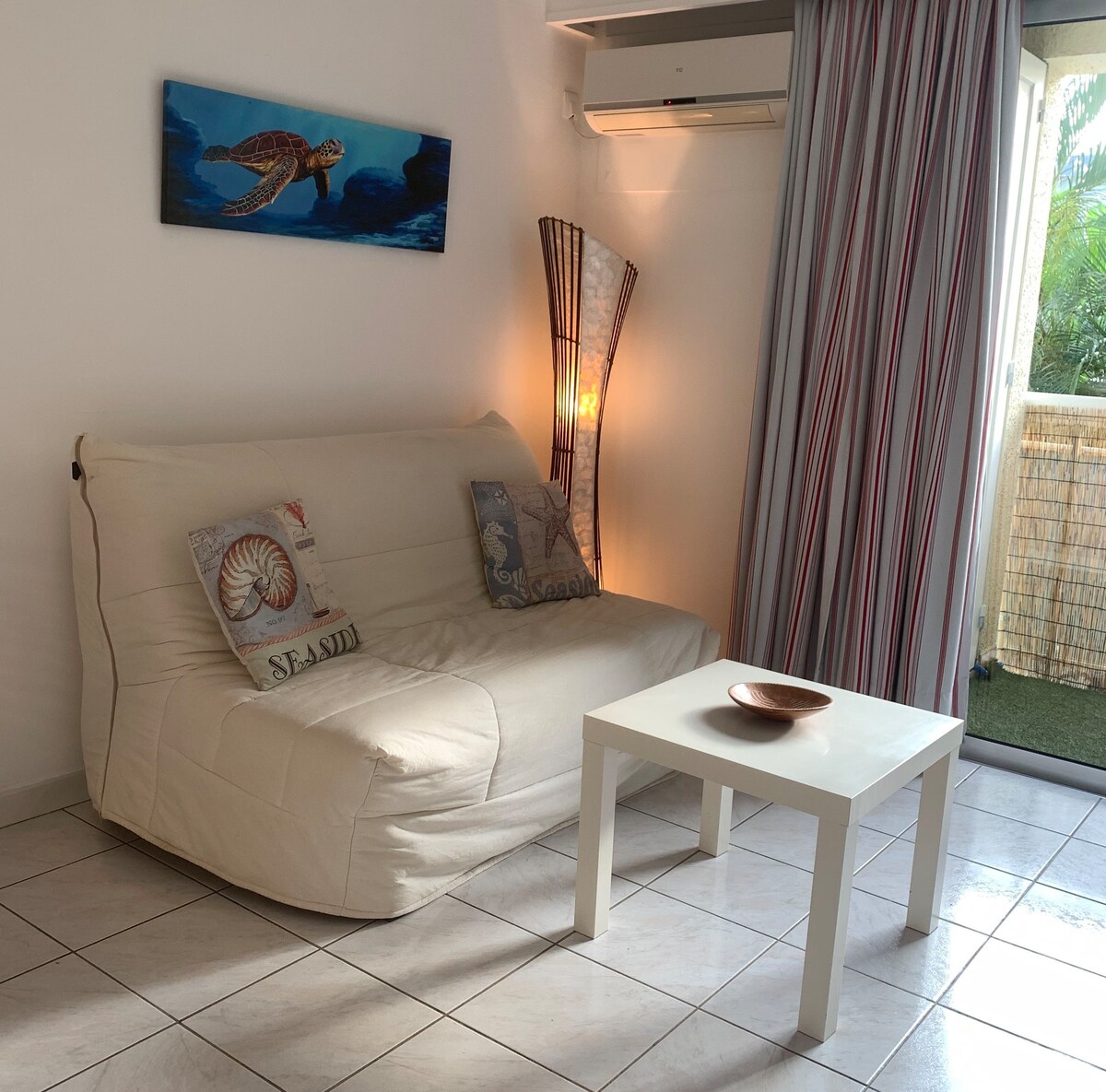 À la Baie des Citrons à 100 m à pied d’une plage sécurisée et surveillée. La petite résidence se trouve en retrait par rapport aux bars - vous ne serez donc pas embêté par le bruit des noctambules. Vous y trouverez tout le confort pour un séjour inoubliable. 1 place de parking 🅿️ (sur demande 24 h avant l’arrivée) et la possibilité de se garer dans la rue (tranquille) gratuitement. Enfant 👶🏻 bienvenu : je peux fournir un lit parapluie ou un matelas, des jouets etc..