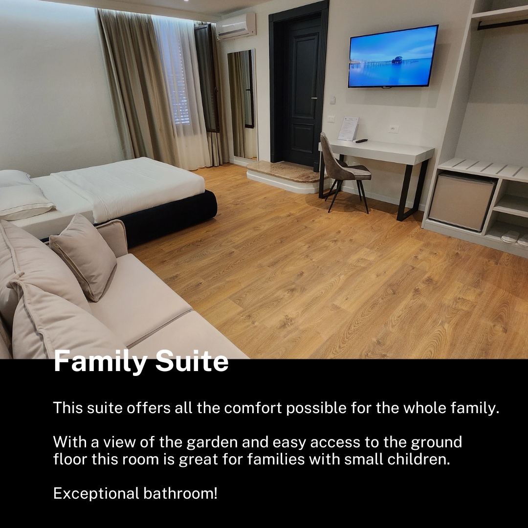 このZINSルームは、世界的に認められたアルバニアで最も影響力のあるアーティストNoizyが創設したZINSのクリエイティブなビジョンによって形作られた、落ち着いた建築的な隠れ家を提供します。すっきりとしたライン、自然の質感、柔らかな光が、デザインとライフスタイルが融合したバランスの取れた空間を作り出します。大きな窓と専用バルコニーが外の景色をお部屋に取り込み、インテリアには文化、デザイン、静かな贅沢を大切にする海外からの旅行者向けに作られたモダンなアルバニアのアイデンティティが反映されています。