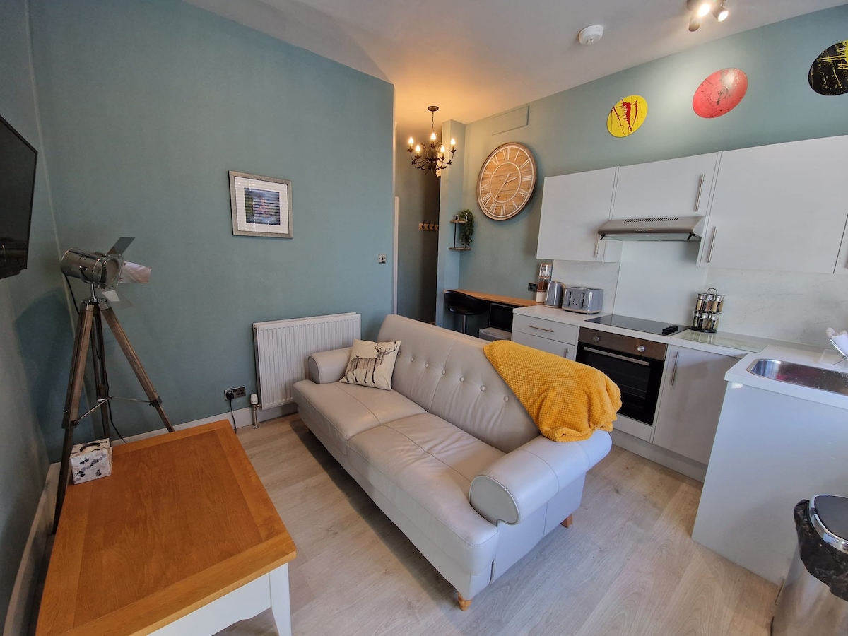 Spacious one bedroom flat in the heart of the city within easy walking distance of shopping, restaurants, bars, music hall, HMS theatre and all the city has to offer. King size bed with high quality mattress. Free Wi-fi. Paid on street parking available. College Street multi-story car park is also a 5 minute walk away. Short Term Let License AC61565F