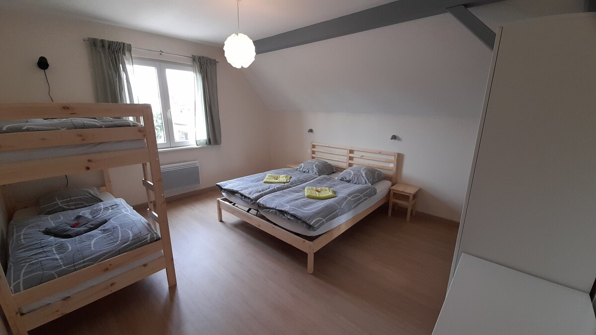 55平方メートルの2部屋のアパートメント*** 完全に改装されたバルコニー付きの1階建ての一戸建て住宅(バリアフリーではありません)。 ストラスブール空港から簡単にアクセスでき、高速道路網に近いこの宿泊施設は6名様を収容できます。 キッチンとWi-Fiを備えた広いリビングルーム、4人用の寝室、シャワーとトイレを備えたバスルームで構成されています。 ベビーベッドとハイチェアが利用可能です。 夏/冬のハイカーに最適です。