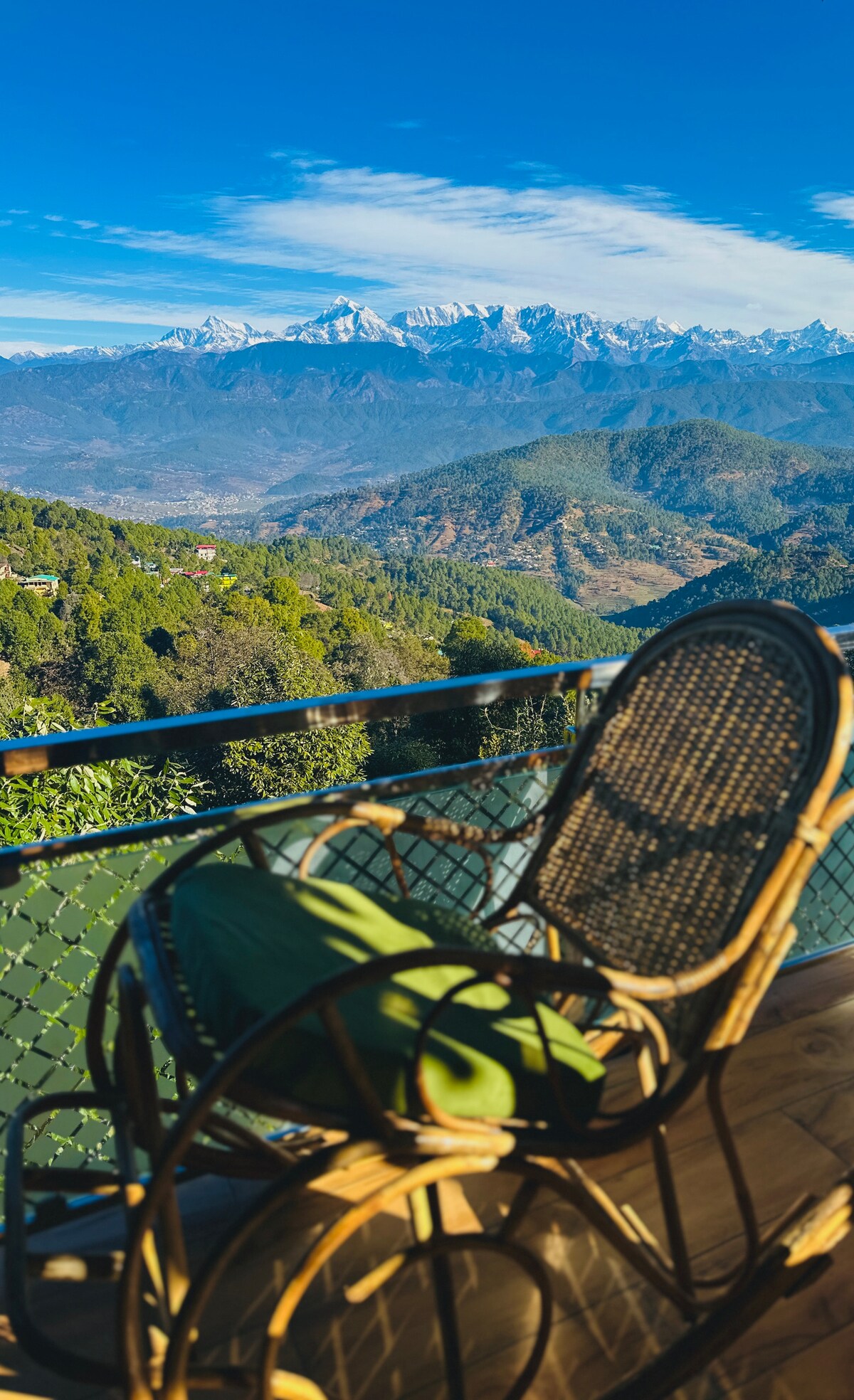 Our home was featured in the Interiors magazine ‘Inside Outside’. Get away from it all and far from the madding crowd. Enjoy views of the valley and the stunning Kumaon peaks from every room. This is a retreat for day dreamers, nature lovers, bird watchers. There is no TV in the house. The beautiful forest walks and spending time in nature is all you need! Wake up to the sound of birds and look east for the spectacular sunrise! Not suitable for infants toddlers and younger children.