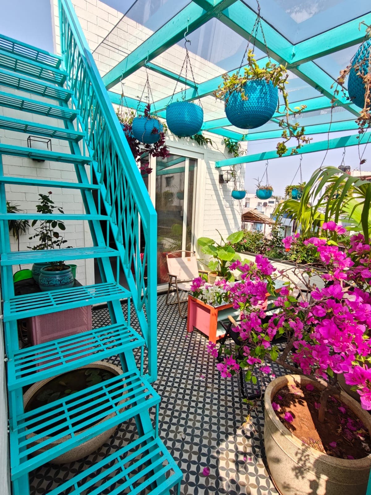 This is a luxurious & spacious penthouse situated in the center of Bangalore and it has 3 levels with plenty of private outdoor space. The greenery and the natural light coming from the skylight and huge glass windows are the highlights. The house is fully loaded with all the modern amenities required for a great stay. Daily housekeeping, 24/7 power, lift, car parking, modern kitchen, bar,desk space for work, high-speed internet, 65 inch TVs, JBL 5.1 soundbar are some of the standard amenities.